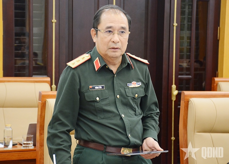 Thượng tướng Phùng Sĩ Tấn, Phó tổng Tham mưu trưởng phát biểu tại cuộc họp.